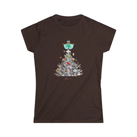 Beachy Palm Tree Christmas Tee — Fishing Holiday Tree Ornaments Women’s T-Shirt by artist Marie Frederique