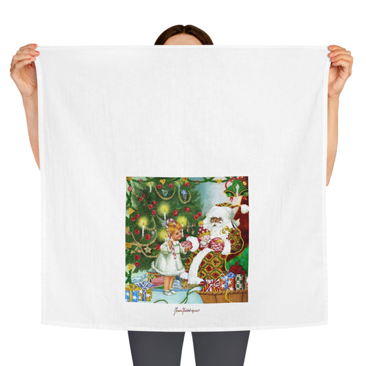 Christmas Santa & Child Tea Towel — Vintage Holiday Kitchen Towel by artist Marie Frederique