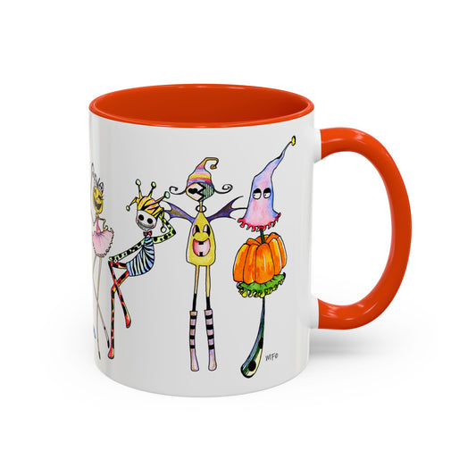 Halloween Characters Line up - Unique Designer Colorful Mug by artist Marie Frederique