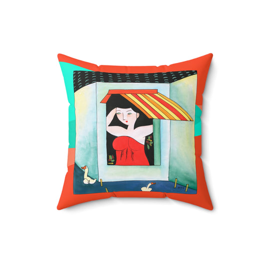 Bold vibrant exotic Faux Suede Square Pillow by artist Marie Frederique