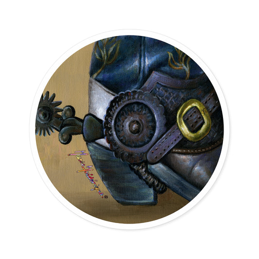 Cowboy boot and spur by Artist Marie Frederique, Round Stickers, Indoor\Outdoor