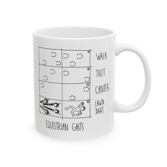 CTS Lawndart, Equestrian Gaits humor - Ceramic Mug, (11oz, 15oz) by artist Marie Frederique