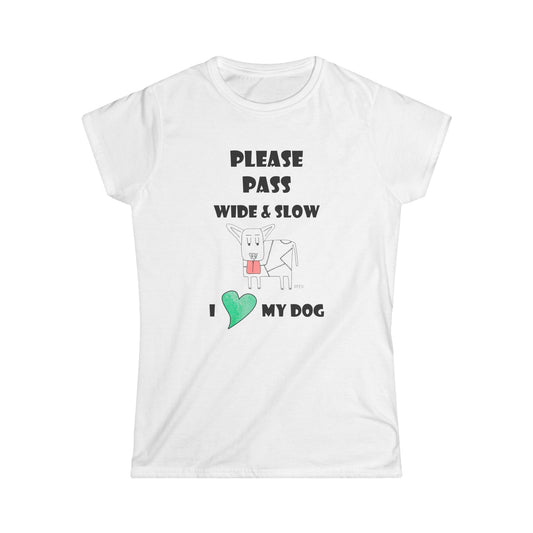Safety Awareness Dog Lover's Tee - 'Please Pass Wide & Slow' I love my Dog, by artist Marie Frederique
