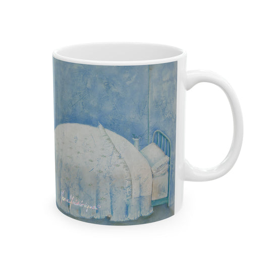 I can't Adult today, blue bed mug by Artist Marie Frederique