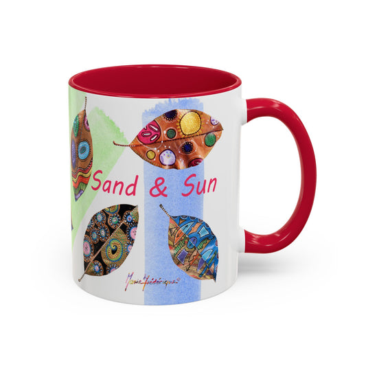 Surf, Sand and Sun multicolored painted leaves - Colorful Mug by Artist Marie Frederique