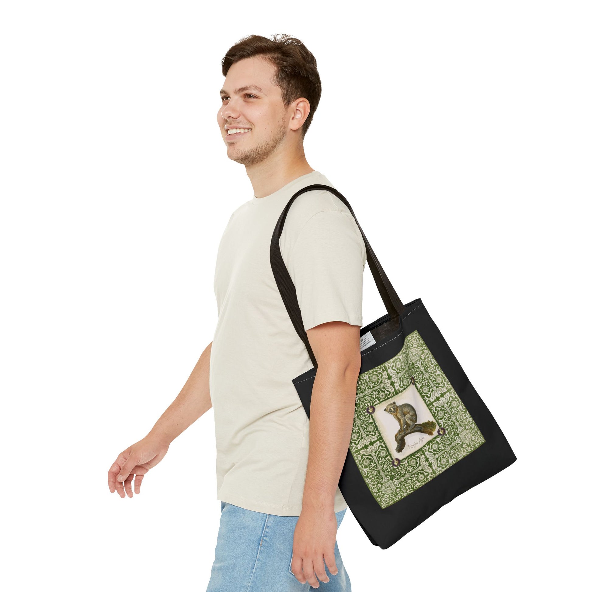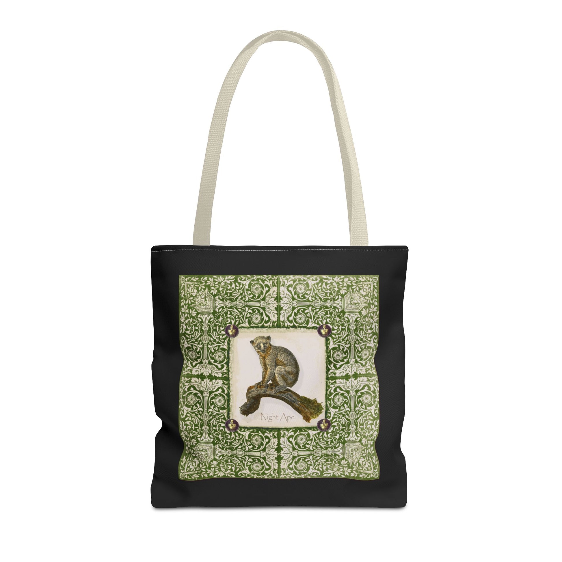 Bush Baby (Pookie), green on black Tote Bag by artist Marie Frederique