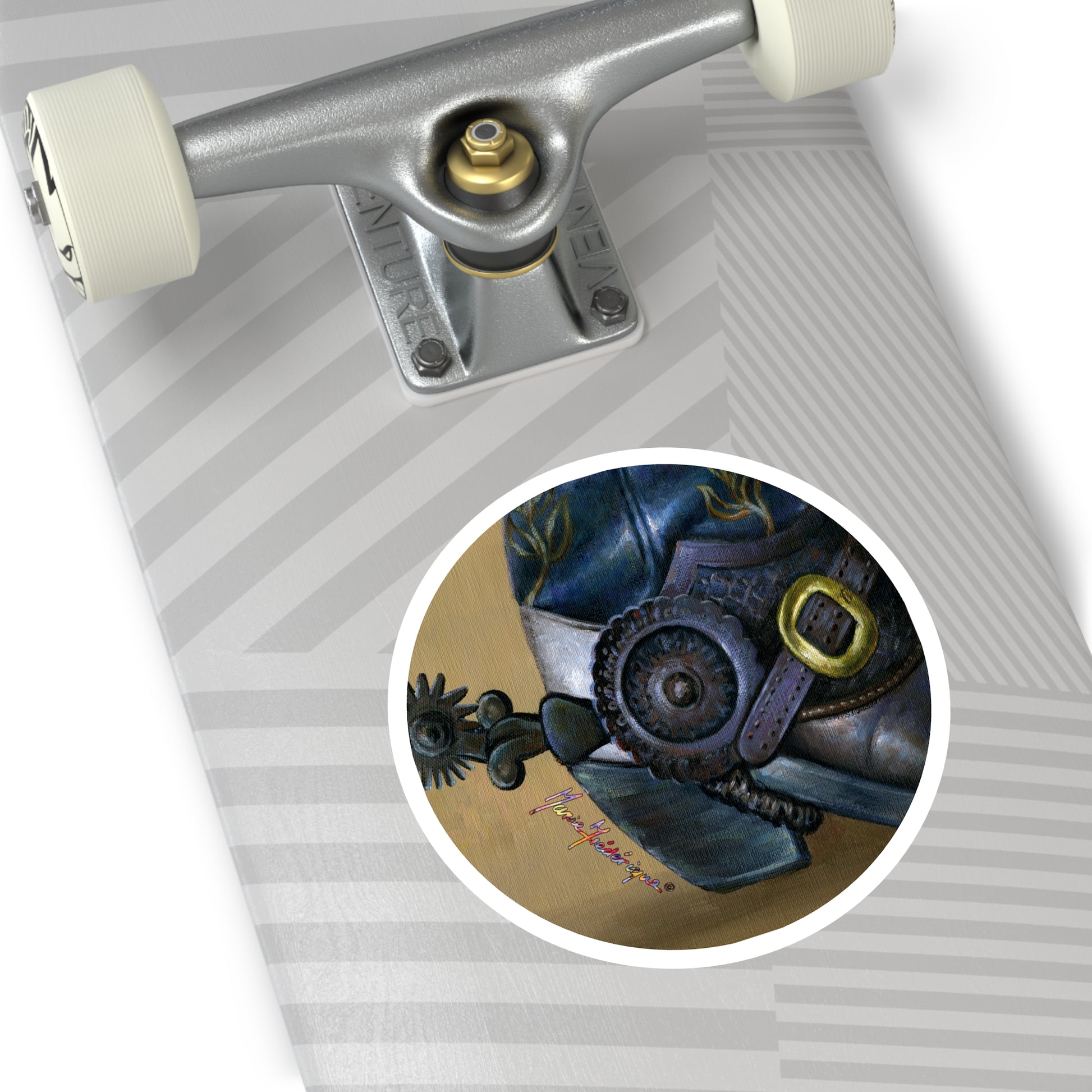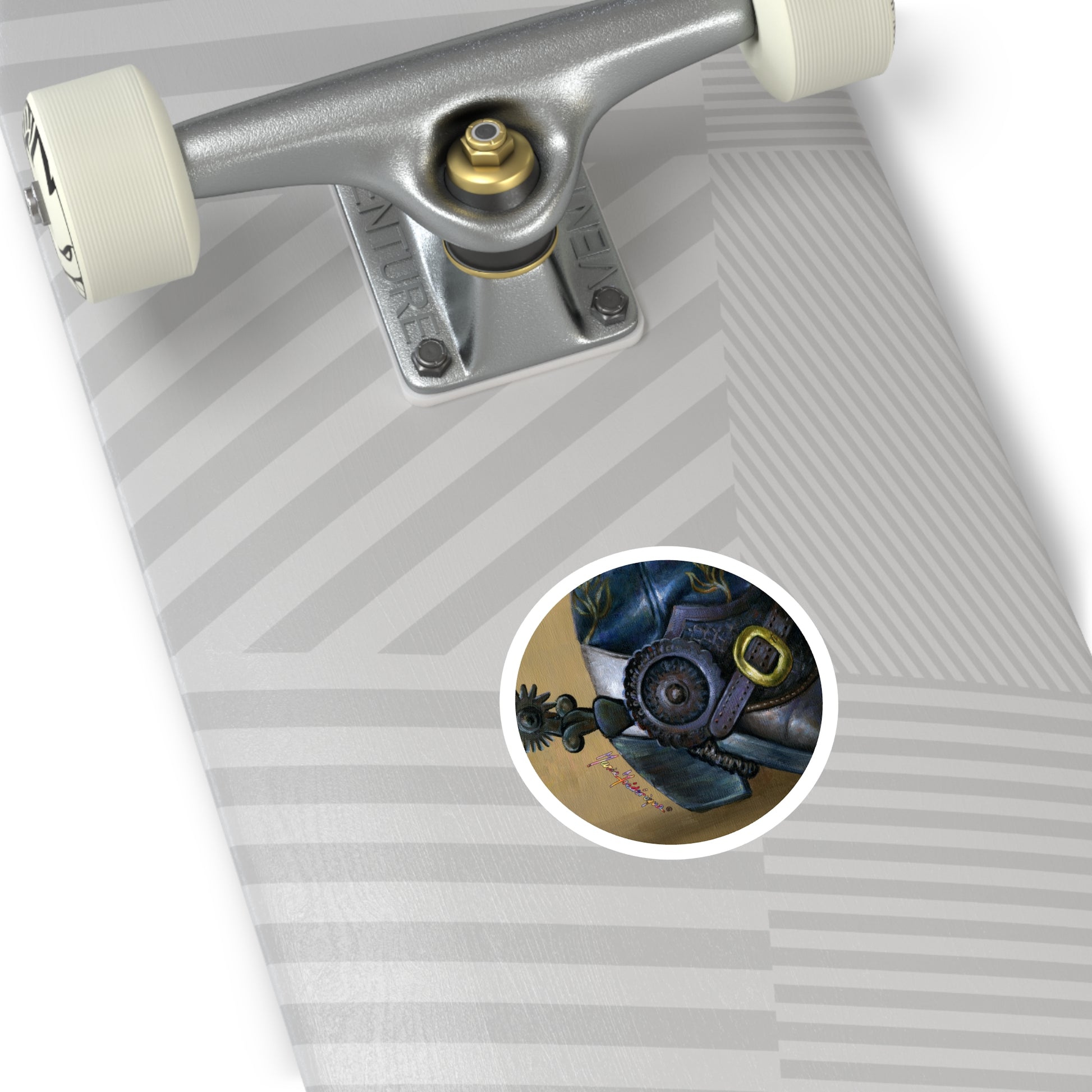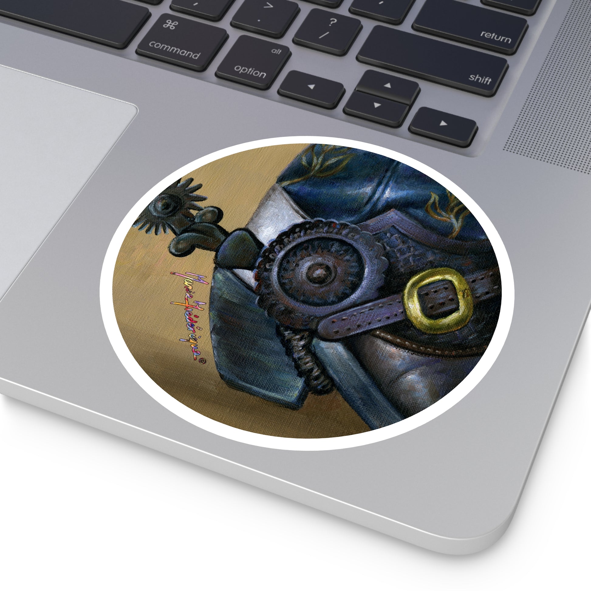 Cowboy boot and spur by Artist Marie Frederique, Round Stickers, Indoor\Outdoor