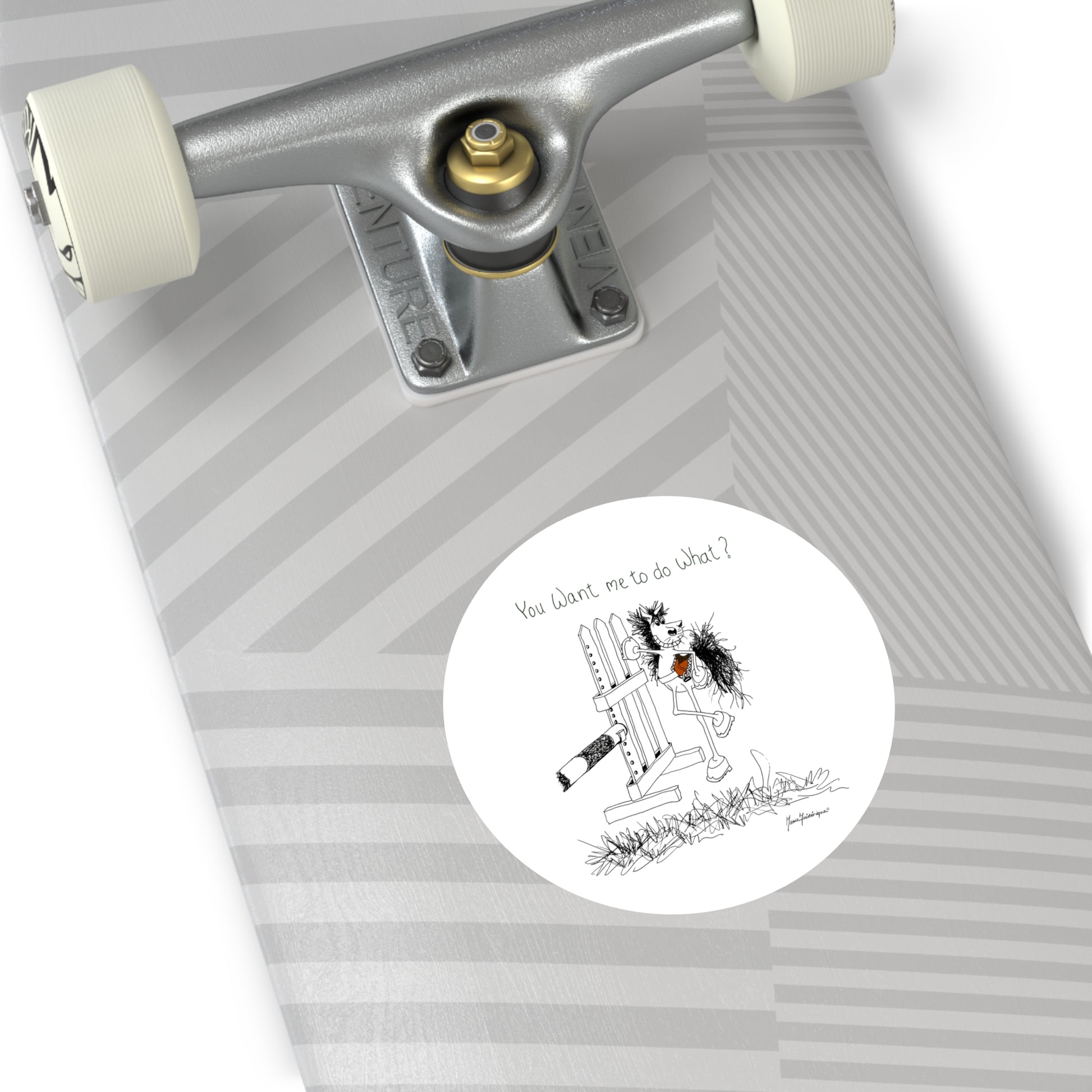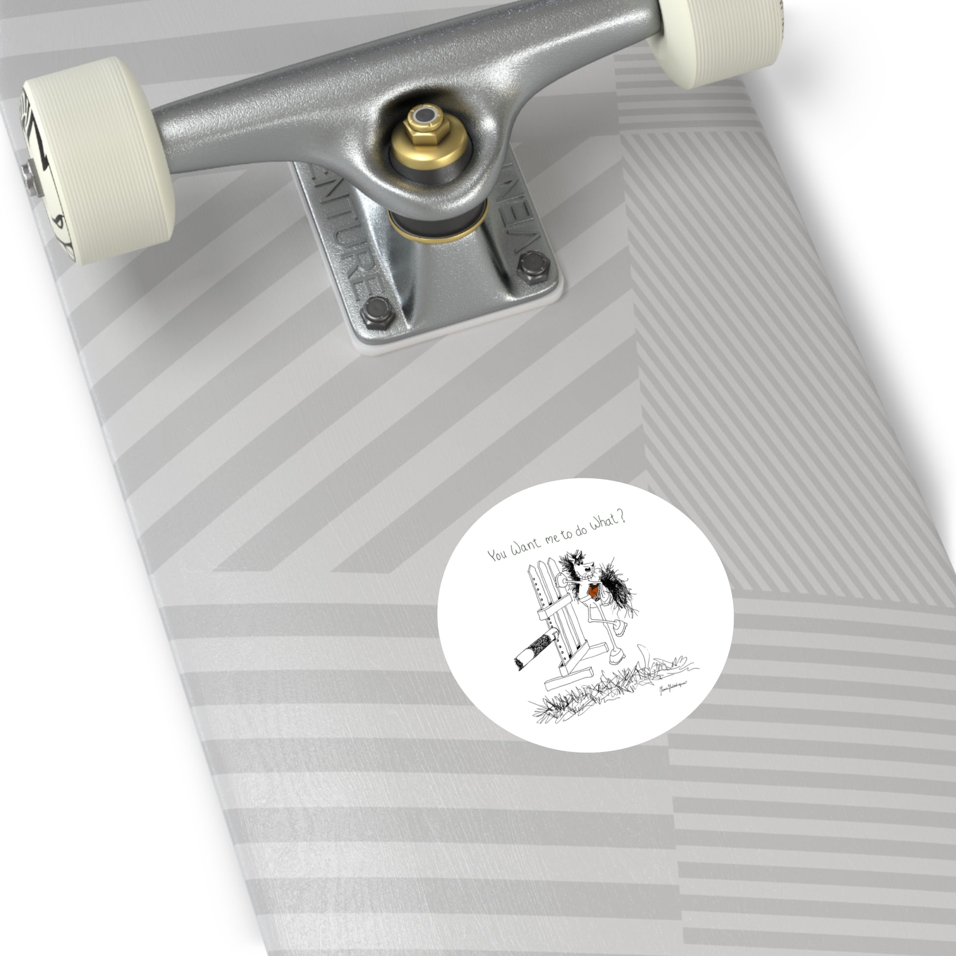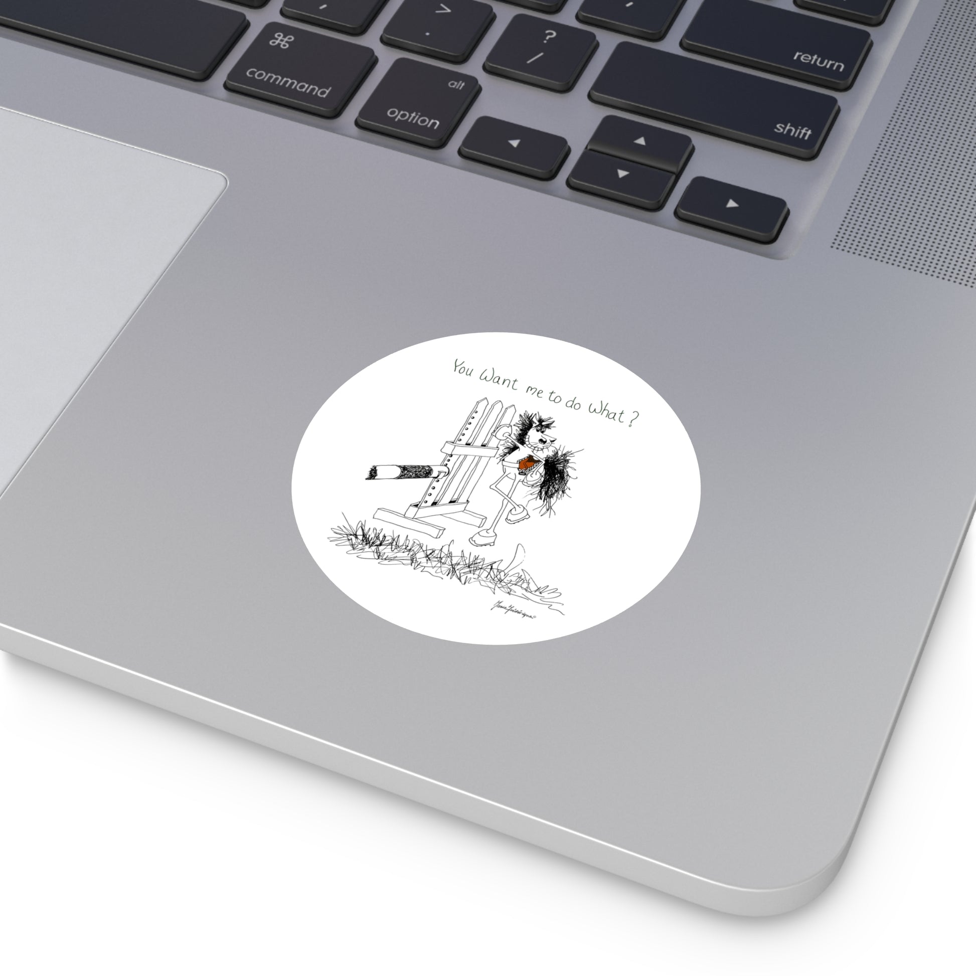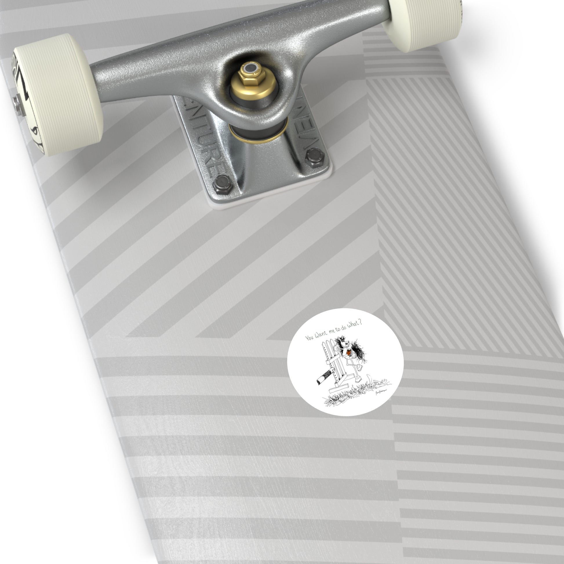 CTS - You want me to do what? from a horse's point of view - Equestrian Round sticker, indoor/outdoor by Artist Marie Frederique