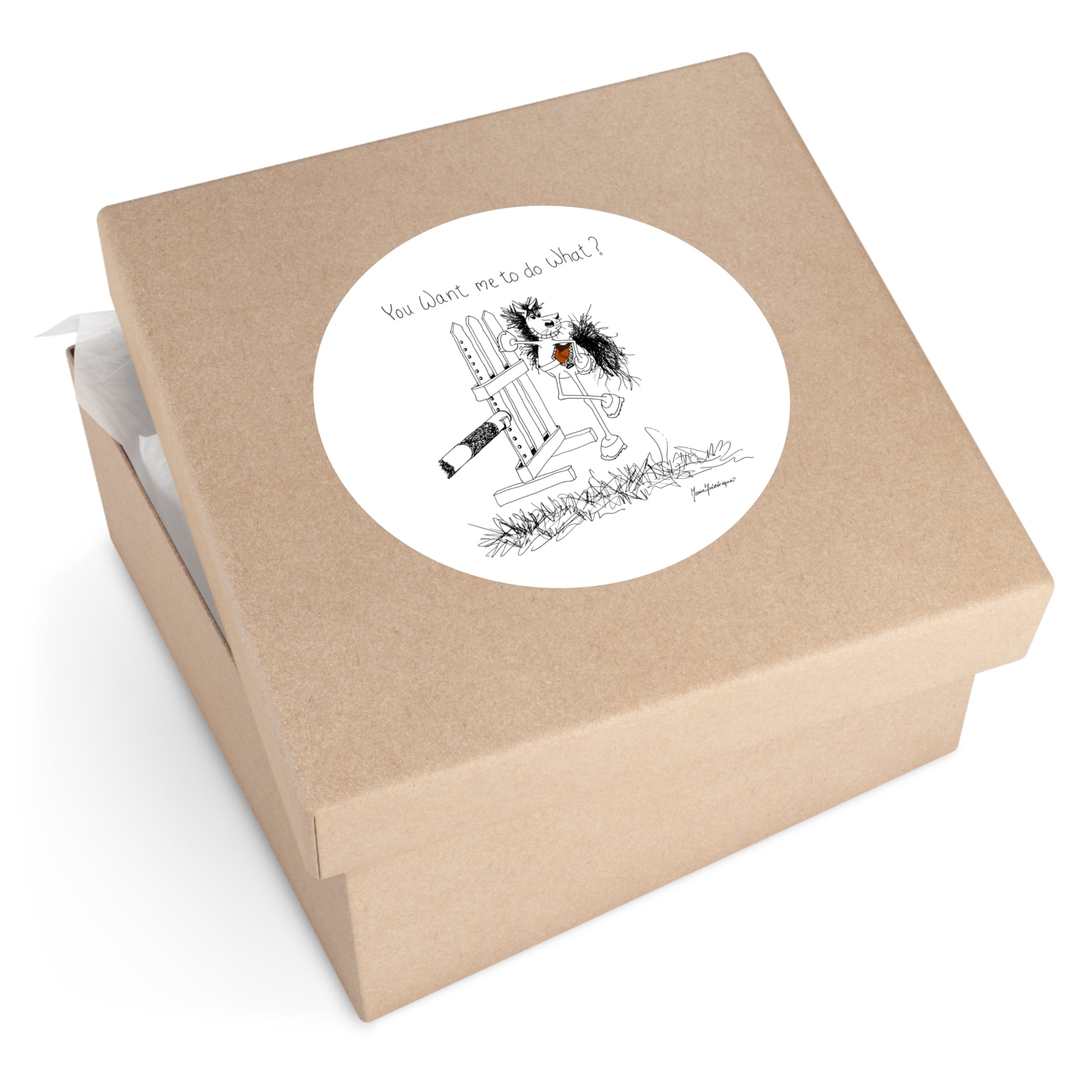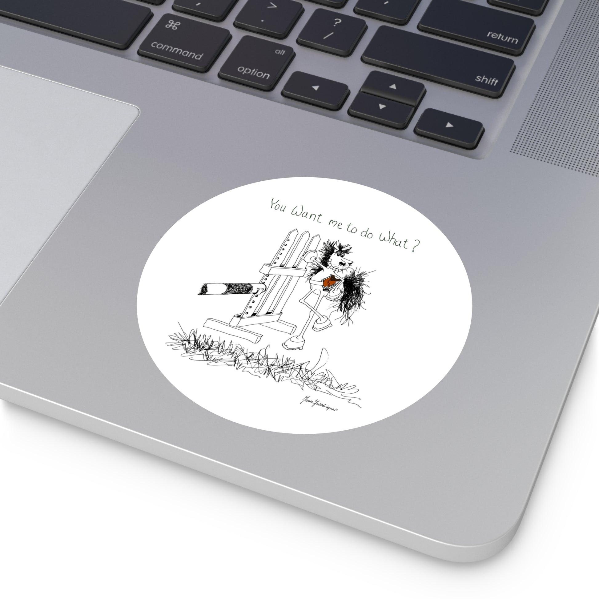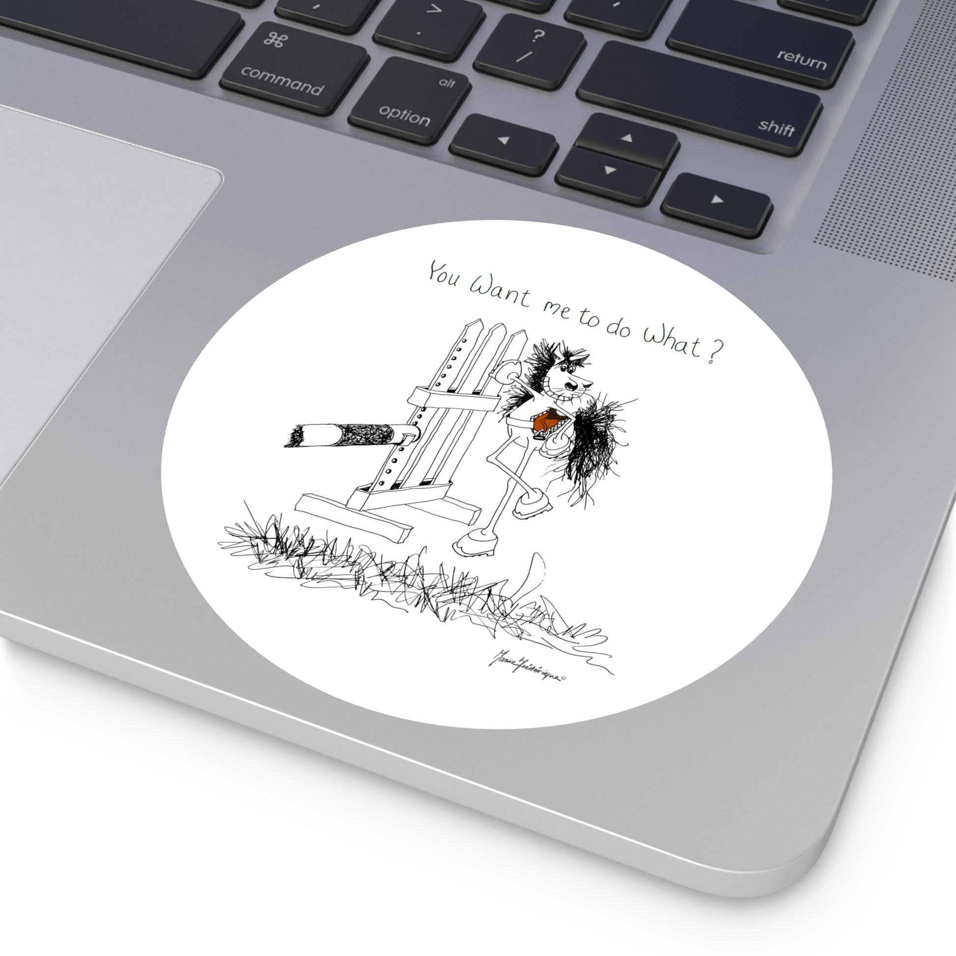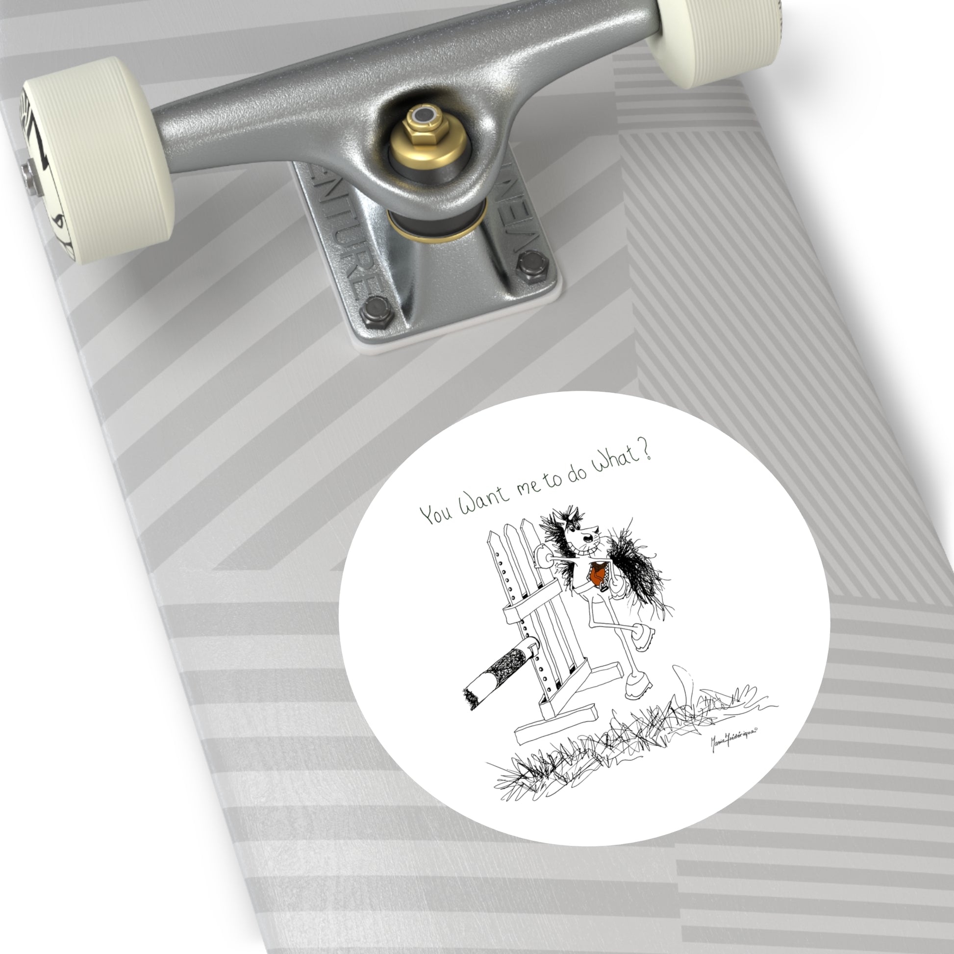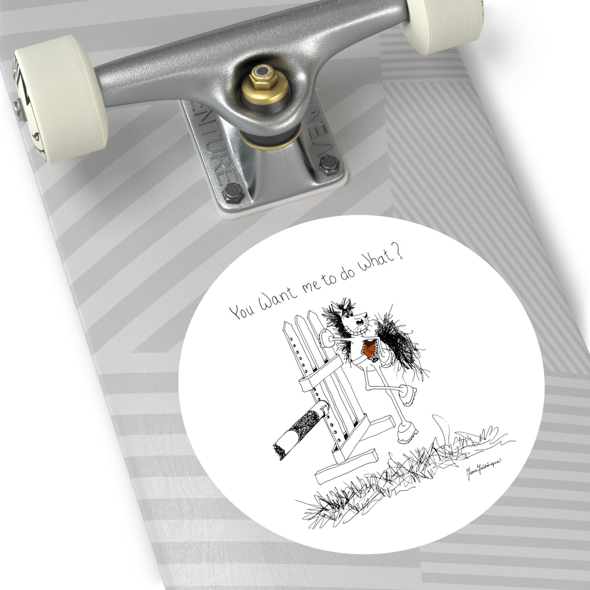 CTS - You want me to do what? from a horse's point of view - Equestrian Round sticker, indoor/outdoor by Artist Marie Frederique