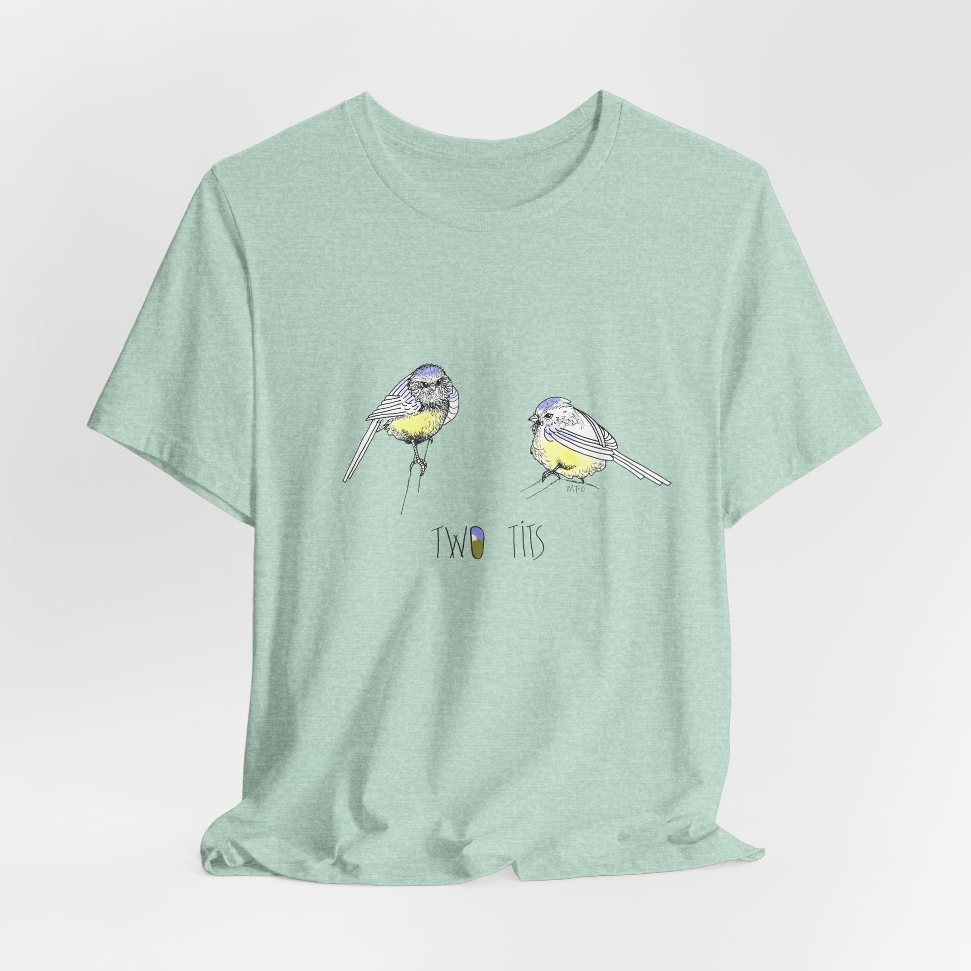 Cute Bird Graphic Tee - "Two Tits" Unisex Jersey Short Sleeve Shirt by artist Marie Frederique