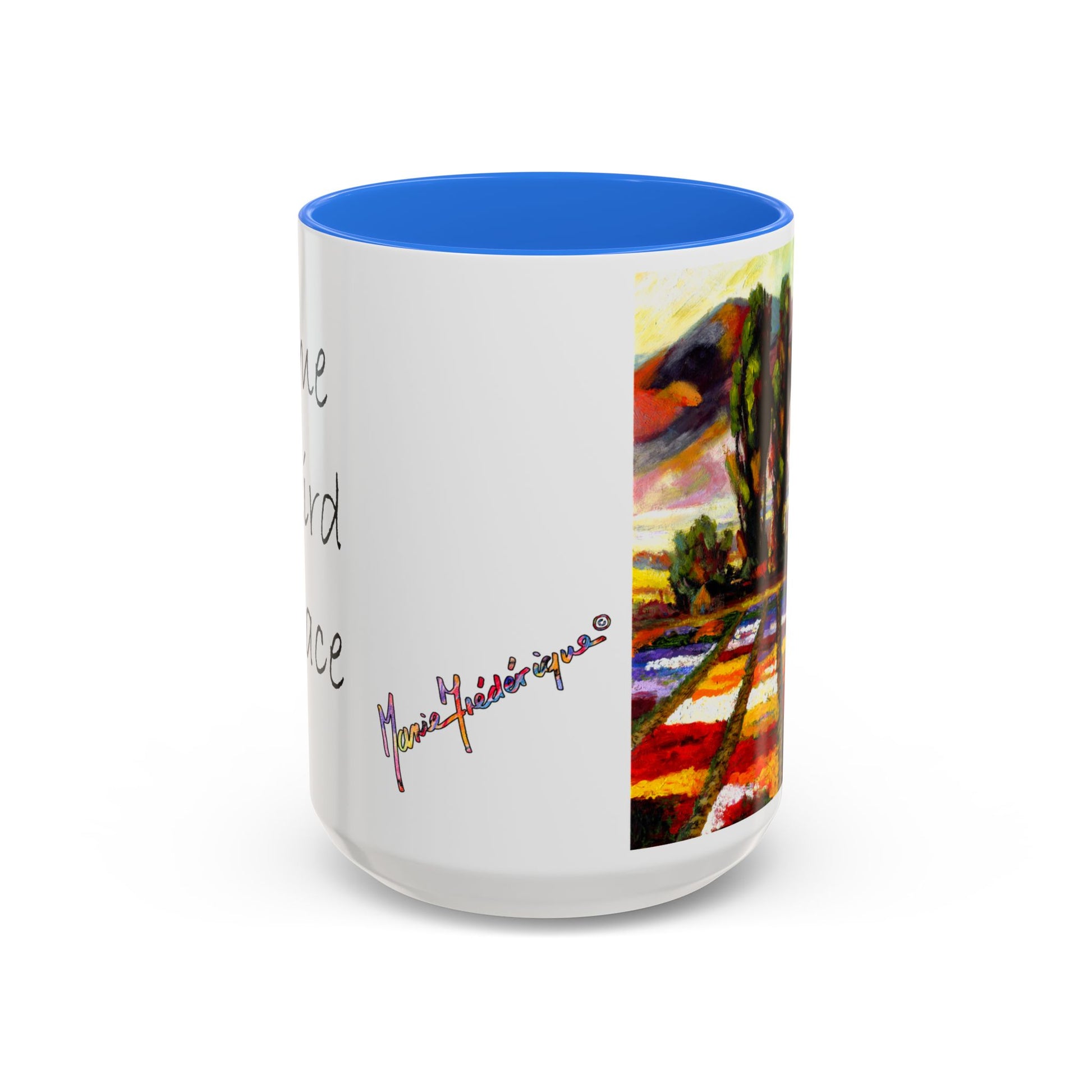 Flower Field "Let me be weird in peace" quote - Colorful Mug by Artist Marie Frederique