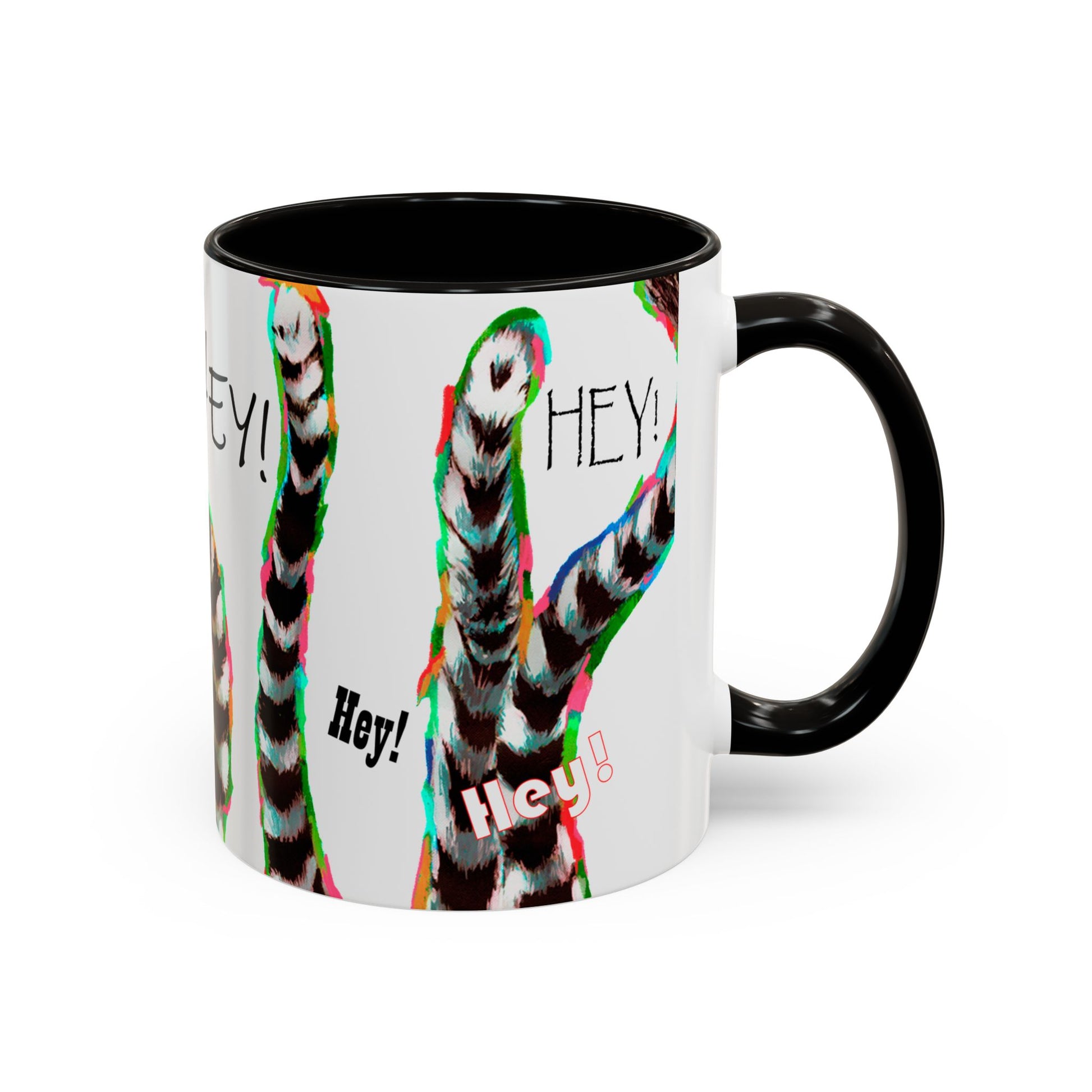 Lemurs from Madagascar scrambling to say "Hey!" - Colorful Mug by Artist Marie Frederique