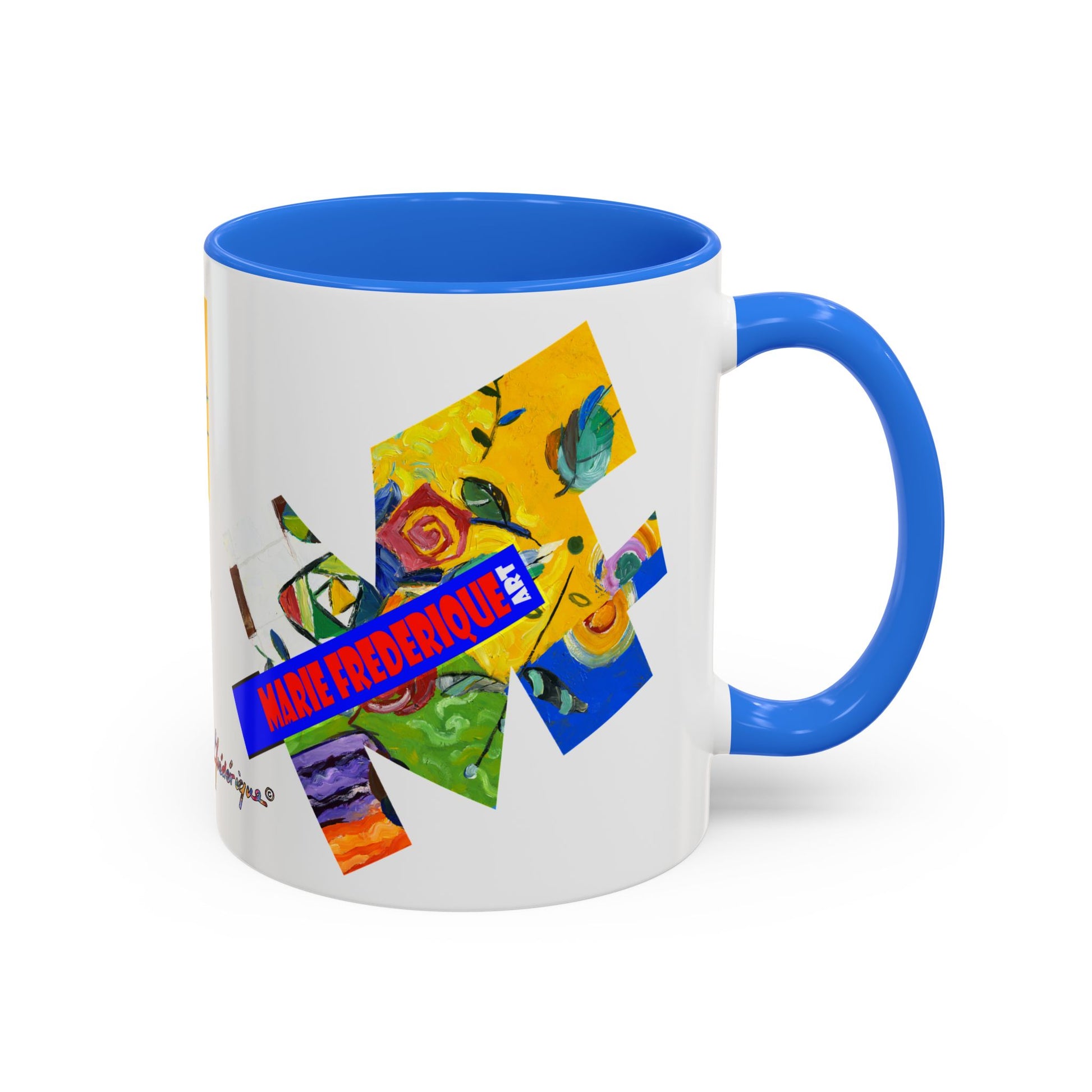 Brighten up your morning routine with this Colorful Mug featuring the initials MF decorated with a colorful abstract art print image. Perfect for celebrating special occasions or adding a pop of color to your daily coffee or tea break. Ideal for those who appreciate vibrant designs and unique decor. Great for holidays, birthdays, or any festive celebration.