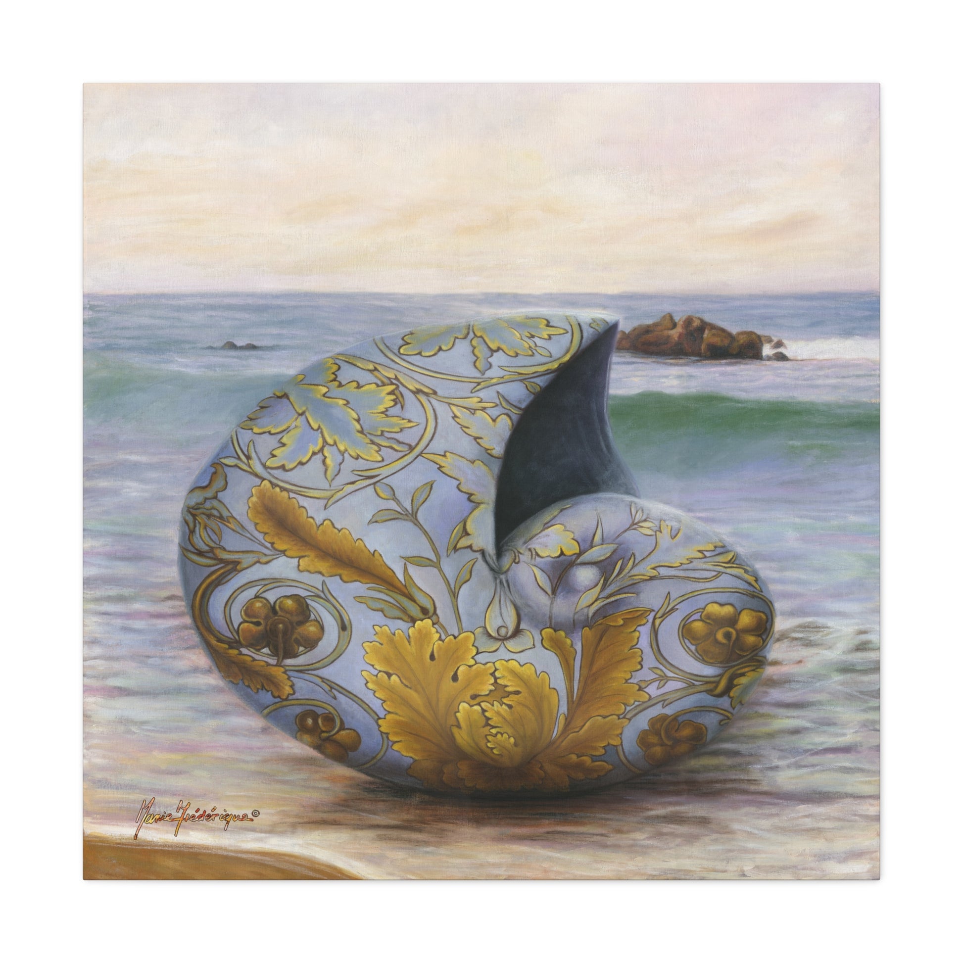 A beautifully painted Nautilus shell like a tapestry sits on the shore, waves in tha background. You can smell the ocean breeze and hear its music. Transform your living space with this exquisite Stretched Canvas. Perfect for beach lovers and art enthusiasts, this canvas brings a serene coastal vibe that evokes the tranquility of ocean waves and sandy shores. Its stunning imagery becomes a focal point in any room, making it ideal for home decor, offices, or vacation getaways. Perfect for gifting during holidays like Christmas, Housewarming events, or Birthdays, this canvas will resonate with anyone who appreciates quality craftsmanship and unique artwork. Celebrate special occasions with a piece that inspires and soothes, making every gathering memorable.