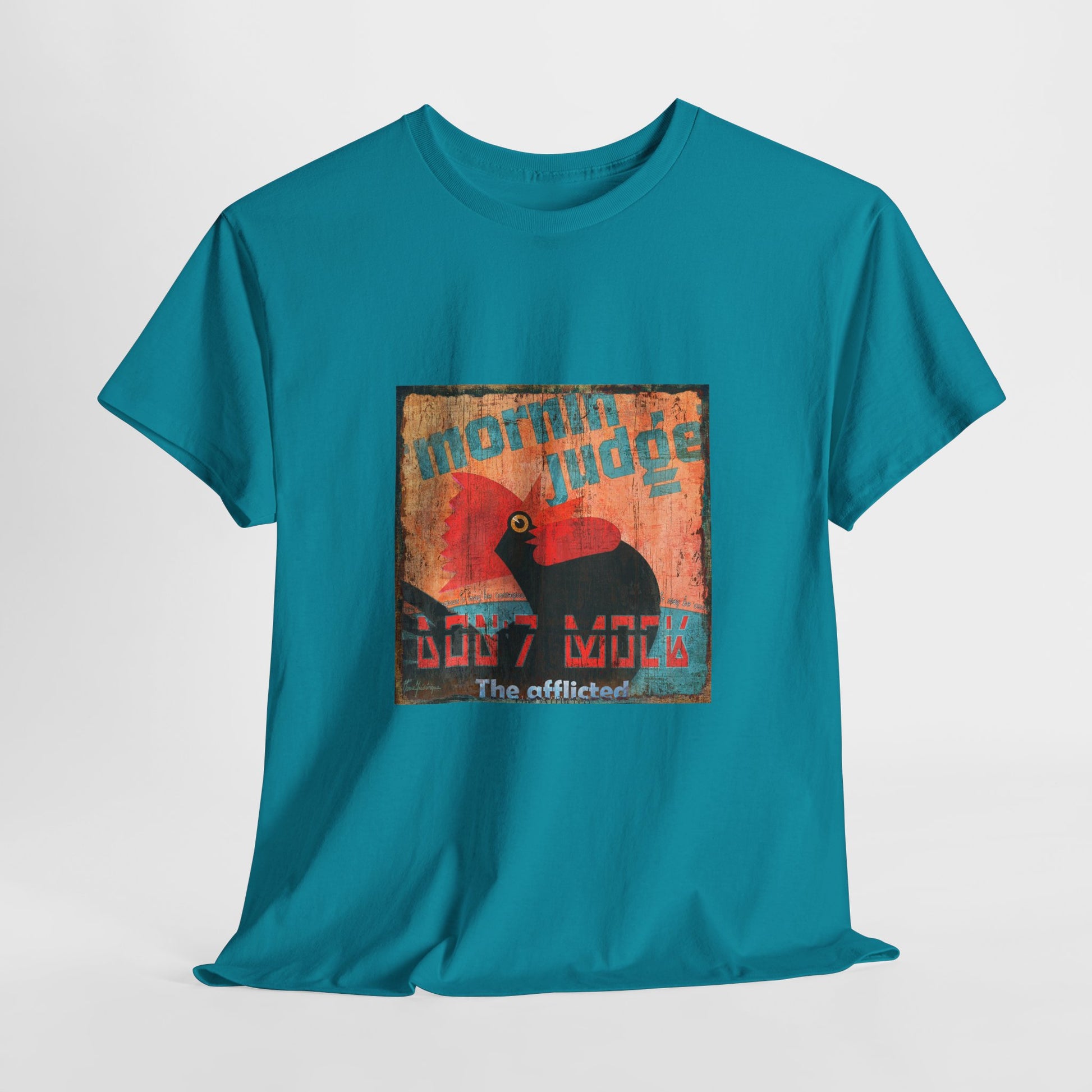 Chicken lovers - Start your day with a touch of humor and wisdom with this morning-themed t-shirt. The design showcases a cockerel crowing and a playful message about not judging others for being slow in the morning. Perfect for those who appreciate a light-hearted start to their day and enjoy unique graphic tees. Great for casual wear and ideal for those who need a bit of humor in their wardrobe. Don't mock the afflicted, it may be contageous.