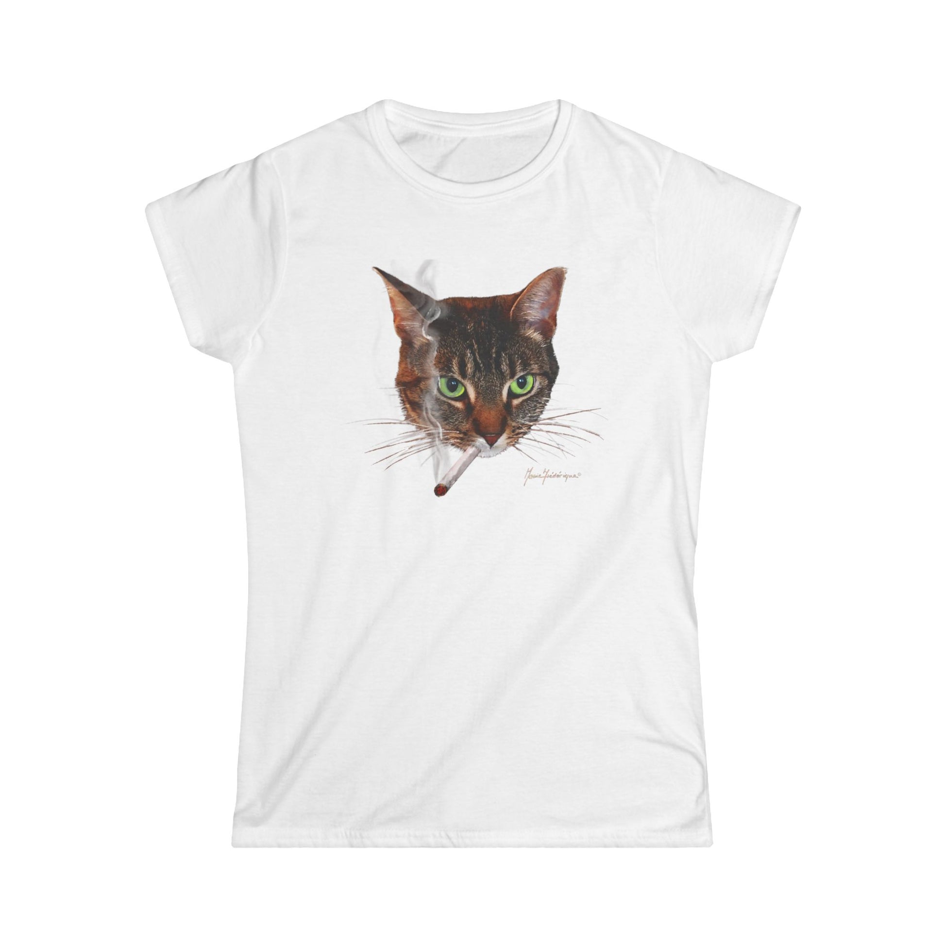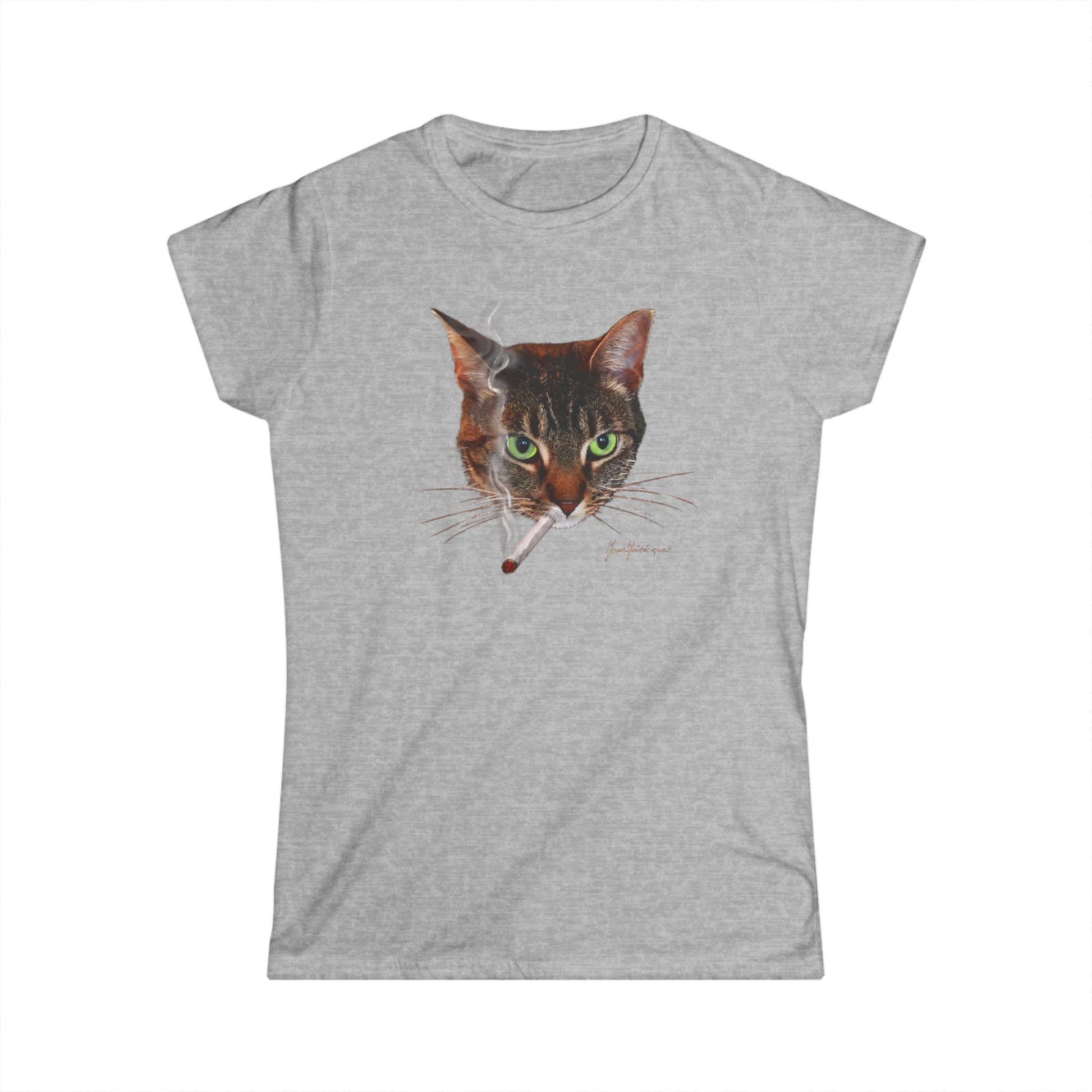 Dare to wear this Smokin Hot Pussy (Taby cat) design T-Shirt with a cigarette in its mouth. This edgy and unique tee is perfect for cat lovers with a bold sense of style. It's a great addition to your casual wardrobe, and it's relevant for cat-themed parties, casual outings, and everyday wear.