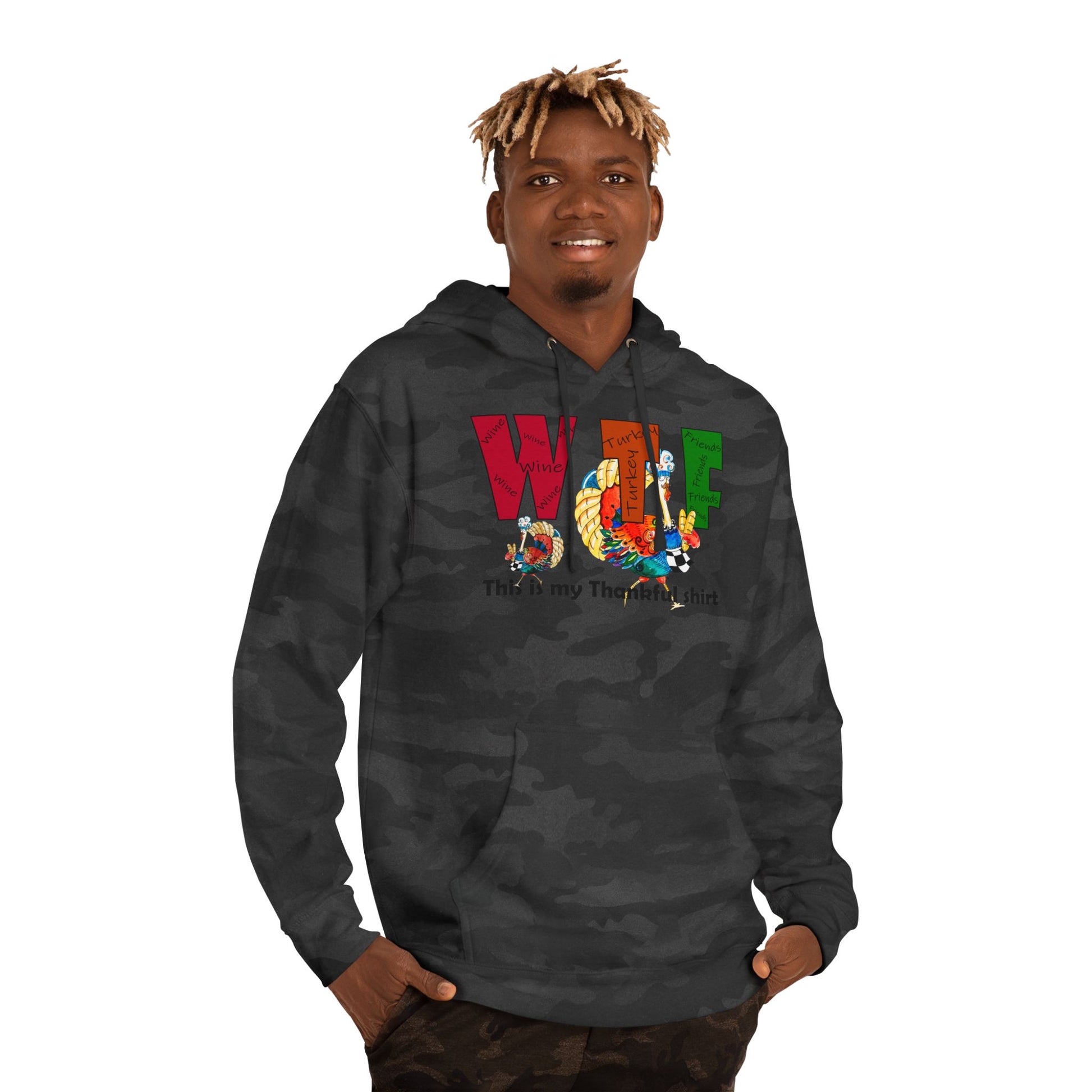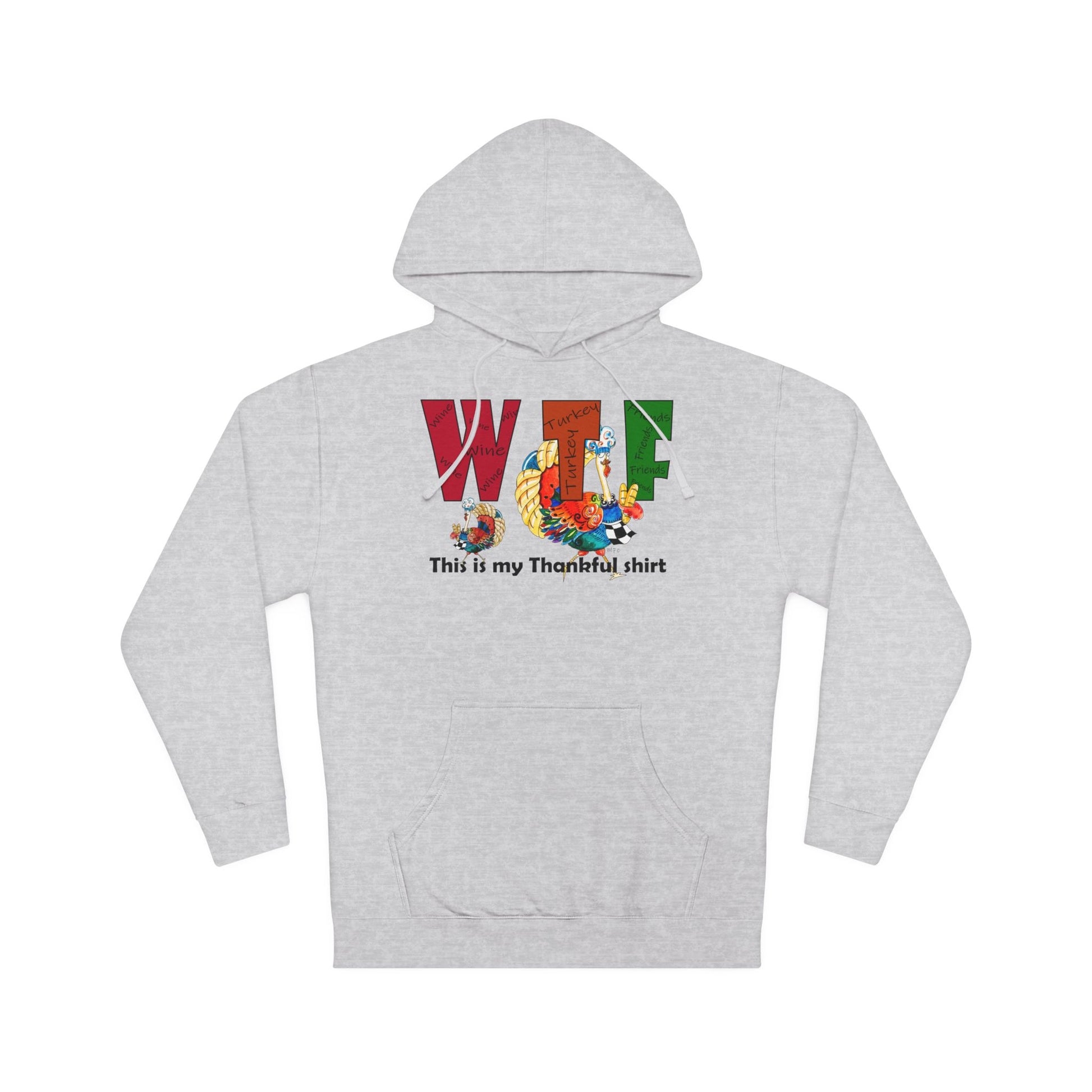 WTF (Wine, Turkey & Friends} with the words "This is my Thankful shirt" Hoodie Great Gift for the Fall season.