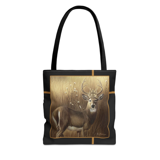 Deer Buck Tote Bag – Golden Meadow Wildlife Art Tote by artist Marie Frederique