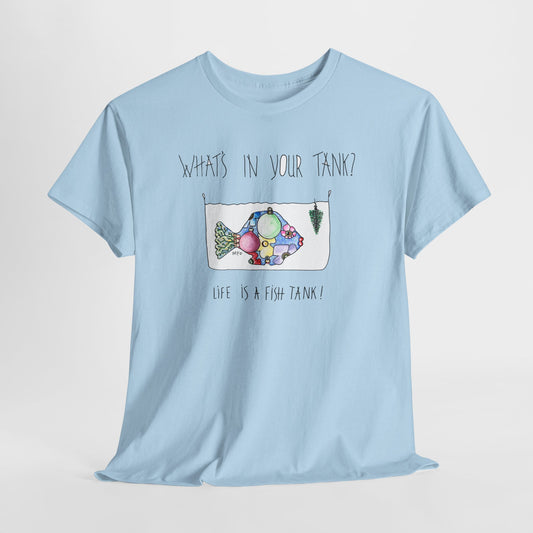 Fish Tank Graphic Tee — “What’s In Your Tank? Live Is A Fish Tank” Cute Aquatic Illustration Shirt