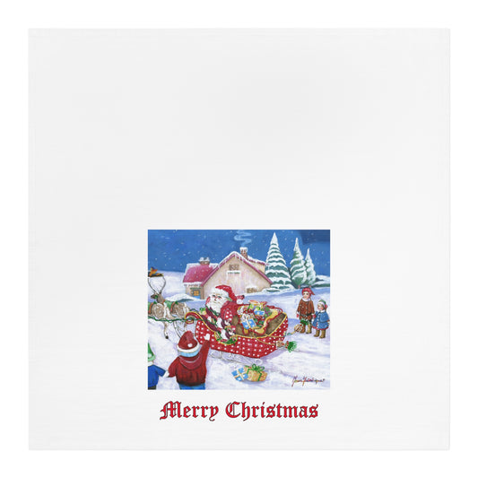 Christmas Santa Sleigh Cotton Tea Towel - Christmas Decor by artist Marie Frederique